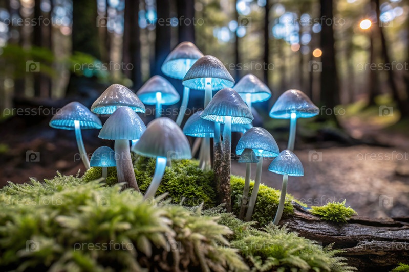 Ядовитые грибы. Жабы. Галлюциногенные грибы. Светящиеся грибы. Изображение для иллюстрации тем, связанных с природой, фантазией, сказками и магией