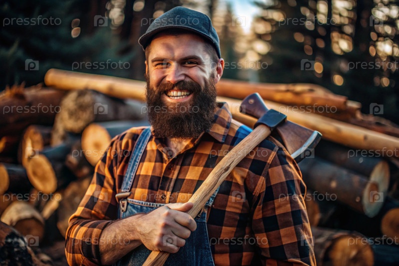 Лесовщик с топором. Бородатый лесоруб. Мы готовим древесину. Пешие прогулки в лесу. Уход за лесом. Человек в квадратной рубашке использует топор. Жестокий человек в лесе. Сила и власть