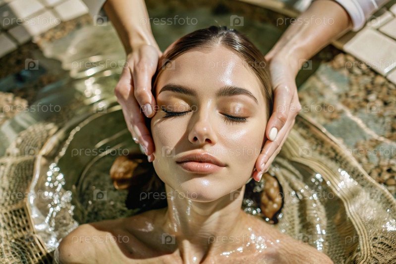 Близкий вид сверху молодая красивая женщина на спа-процедурах в баре концепция здорового образа жизни, расслабление косметические процедуры эго