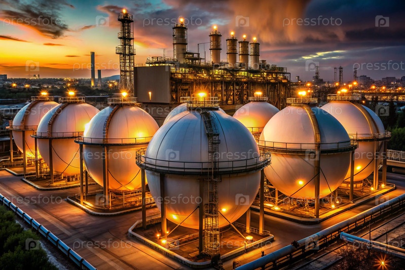 Белые сферические резервуары для хранения нефти на открытом нефтяном Наборные баки для нефтепродуктов - это оборудование для промышленного сферного хранения нефти