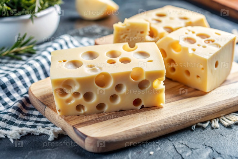 Сыр с Massadam отверстиями, кусок сыра на режущей доске