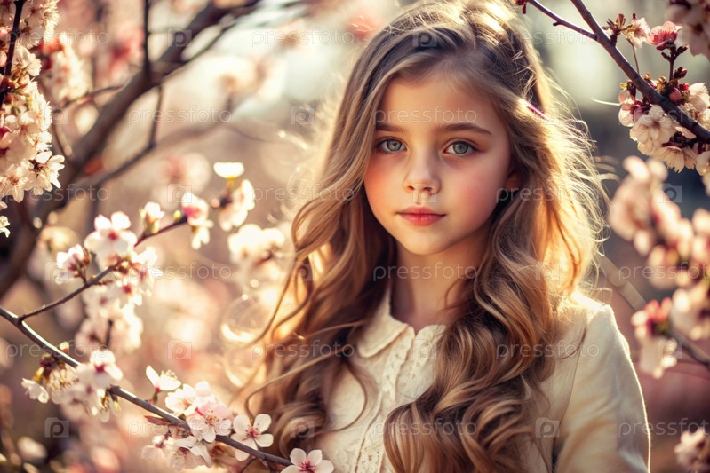 Весна.Портрет.Красавая молодая девушка в вишневом саду.Весенние цветения