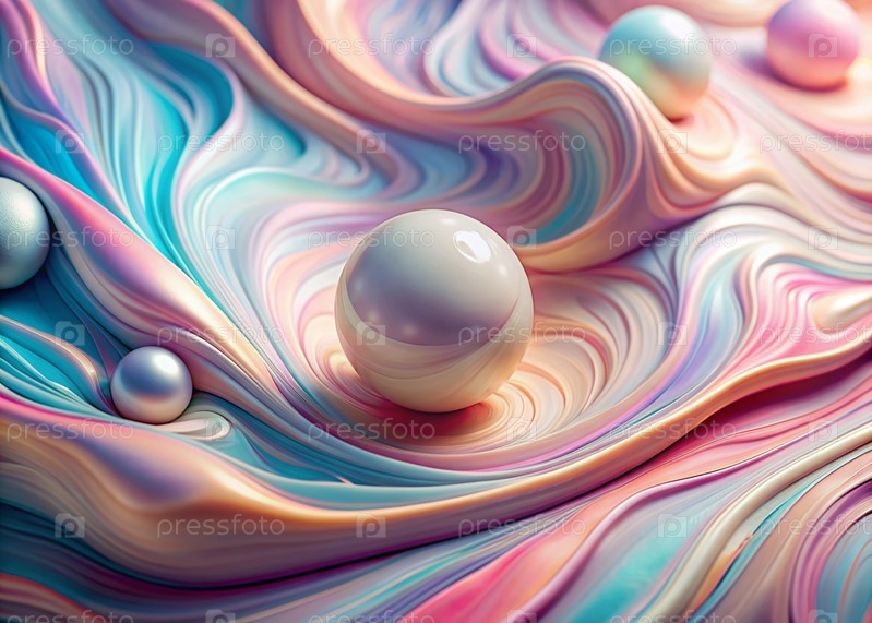 Абстрактный, мечтательный акварельный фон с волнами, полосами и жидкими потоками розового, синего и жемчуга