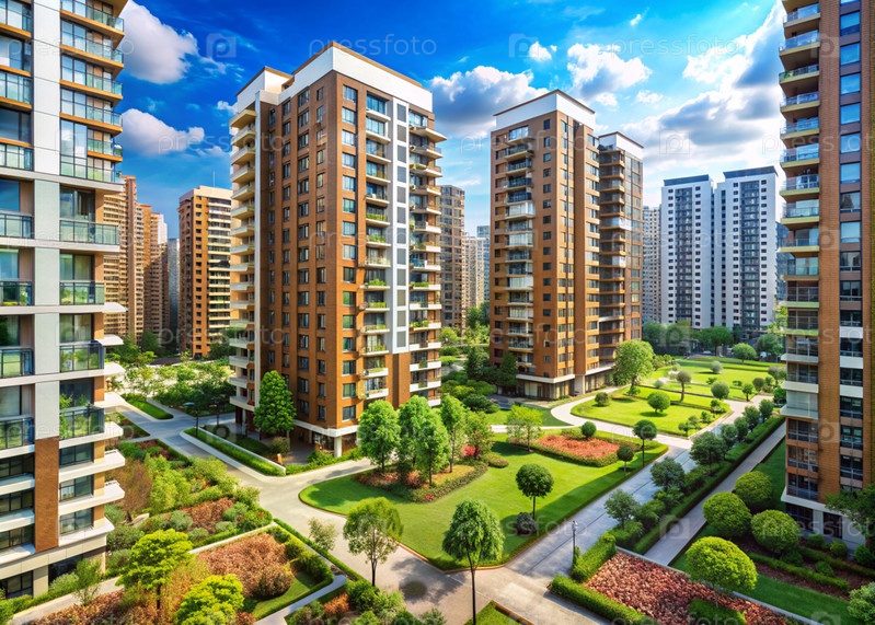 Современные многоэтажные жилые дома. Строительство новых жилых кварталов. Новые здания. Строительный бизнес. Ипотека для нового экологически чистого жилья
