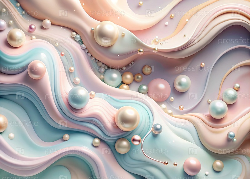 Абстрактный, мечтательный акварельный фон с волнами, полосами, жидкими потоками пастельного розового, синего и жемчуга