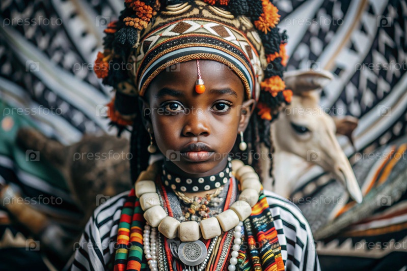 Красивая африканская девушка в традиционном национальном костюме против зебры портрет символизирует традиции и красоту африканского народа