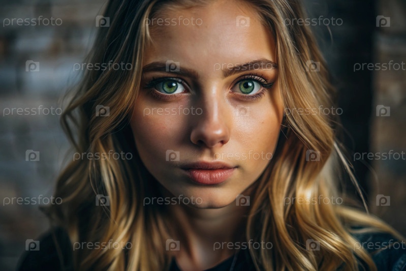 Глубокий эмоциональный портрет. Лицо молодой блондинки без макияжа, с выразительными глазами, кудрявыми волосами. Естественная женская красота