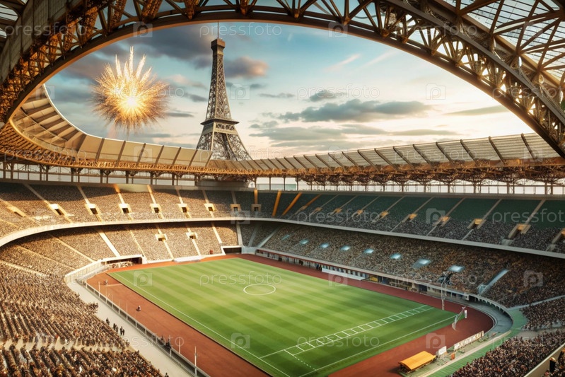 14 июля - Национальный день Франции. Государственный флаг Франции на Эйфелевой башне. Триколор. Концепция Олимпийских игр во Франции 2024