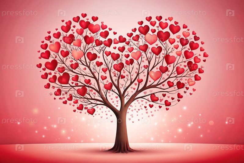 Красивое фантастическое дерево в форме сердца на фоне в стиле боке
