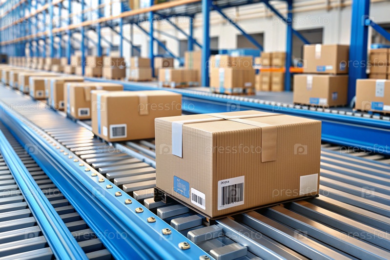 Интеллектуальная автоматическая упаковка посылок на складе, теги и QR-коды в картонные коробки для эффективного отслеживания, аутентификации и слежения