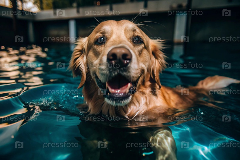 В бассейне плавает счастливый золотой ретривер в розовых очках на розовом надувном кольце.Концепция дружественного отдыха для домашних животных