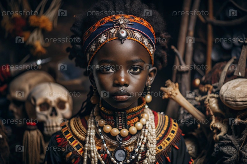Красивая африканская девушка в традиционном национальном костюме. с костями. портрет символизирует традиции, культуру и красоту африканского народа