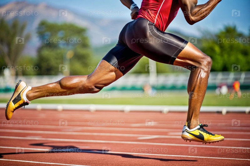 Ноги чернокожего афроамериканского спортсмена сближаются во время спринтовой гонки на спортивном мероприятии