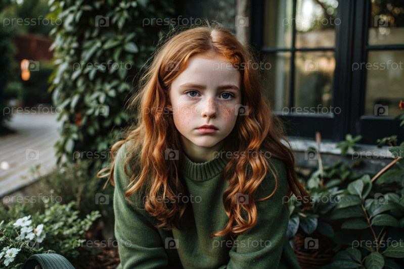 Портрет красивой, несчастной и печальной молодой рыжеволосой девочки-подростка.Проблемы, образование подростков