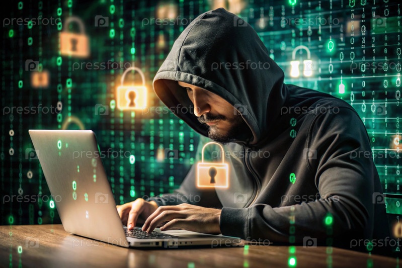 Хакер работает на ноутбуке, цифровые коды на виртуальном фоне. взлом и защита онлайн-данных. цифровые технологии, разработка программного обеспечения