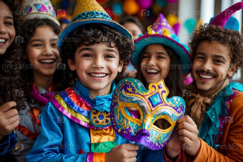 Еврейские дети в карнавальных костюмах празднуют традиционный еврейский праздник Пурим Израиль