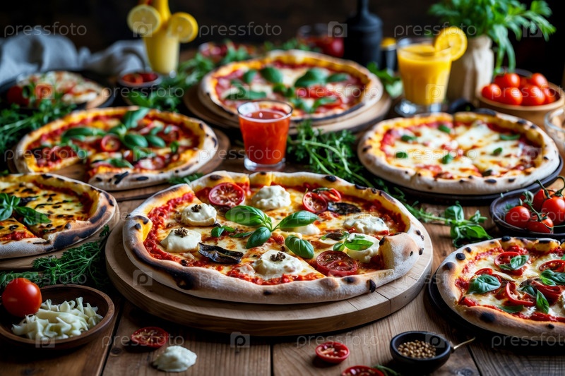 AI Generative Italian Pizza на декорированнод столе Background, Food Photo for Restaurant Menu Pizzeria