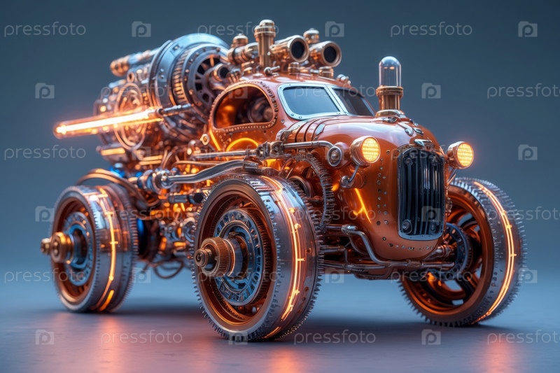 Steampunk генеративная металлическая футуристическая машина, фантастический дизайн транспортного автомобиля будущего