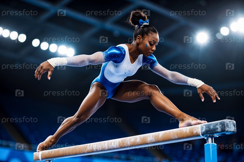 Соревнования по ритмической гимнастике, спортсменка выступает на чемпионате