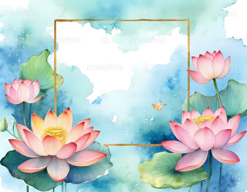 Этот изысканный дизайн открытки имеет яркие цветы лотоса в стиле акварели, предлагая свободное место для личных сообщений