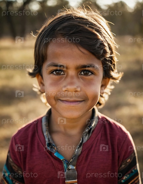 Молодой мальчик австралийских аборигенов уверенно стоит на солнце, его теплая улыбка отражает гордость за свое наследие