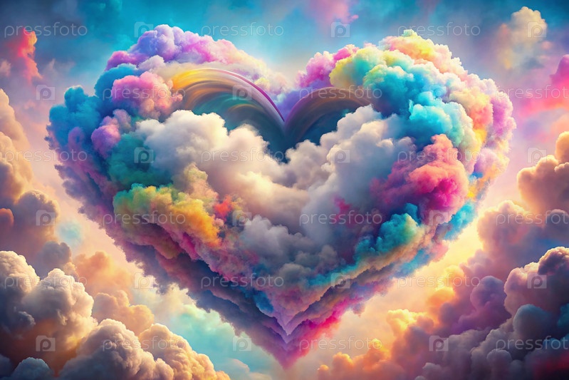 Знак на День святого Валентина Абстрактный фон Красивое, нежное и красочное сердце в облаках