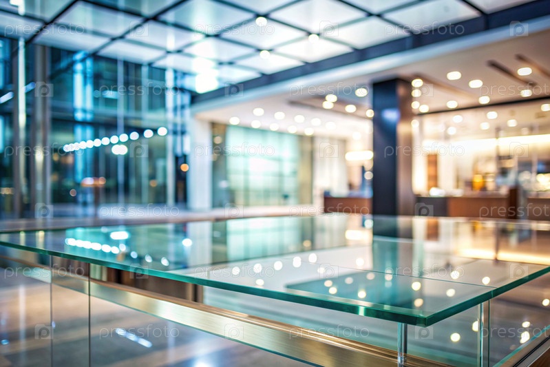 Современный стеклянный подиум со стеклянной стеной Элегантный дизайн для презентации продукта