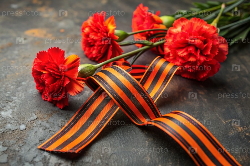 Знамя на 9 мая Красные гвозди и Георгиевская лента на старом фоне Концепция Дня Великой Победы 1941-1945 годов и День защитника Отечества