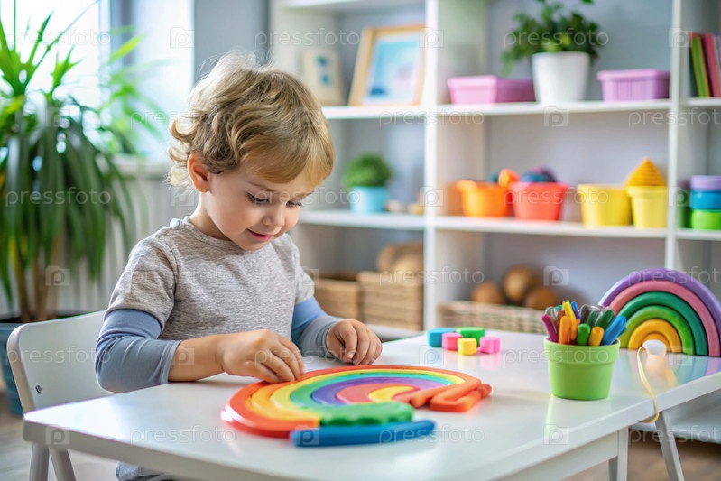 игрушки. маленький мальчик играет в образовательные игры. радужная детская игрушка, цветные пирамиды и логические игрушки для детей. Монтессори-игры для развития ребенка