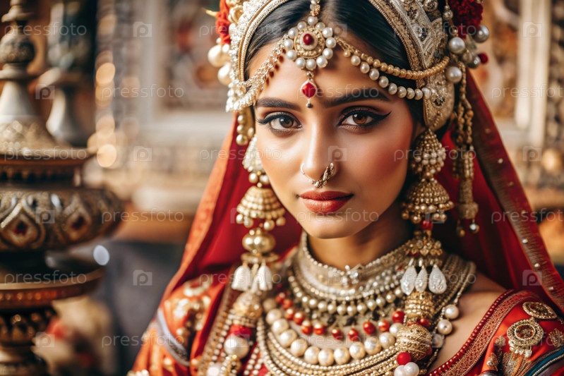 Красивая индийская девушка в традиционном национальном костюме, сари. со слонами. портрет символизирует традиции, культуру и красоту народа Индии