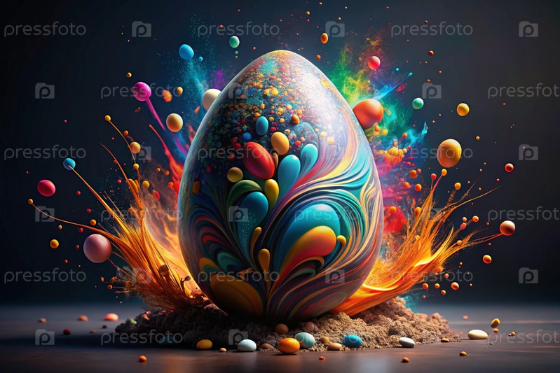 Пасхальный баннер. Концепция яркого пасхального праздника. Творческое абстрактное красочное пасхальное яйцо. Цветовой взрыв