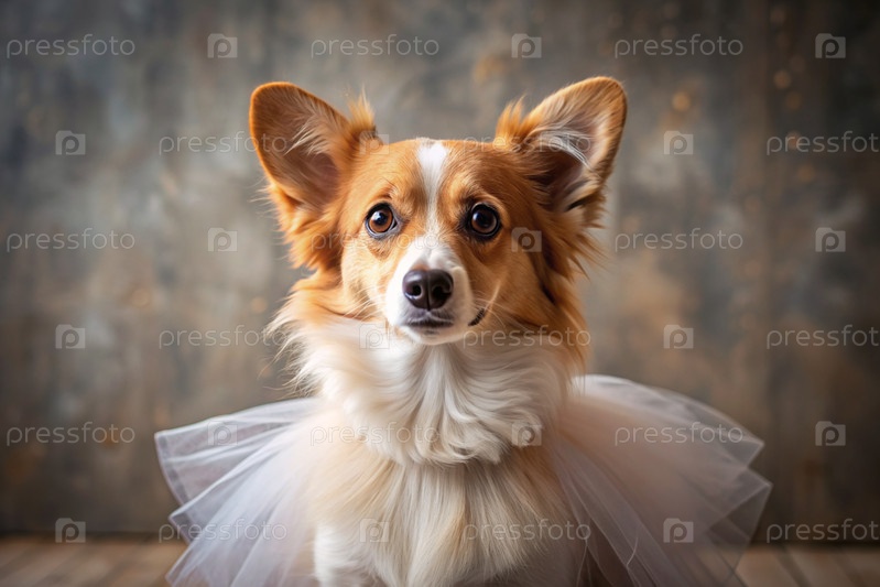 Красивый портрет милой имбирной собаки, одетой в розовое туту