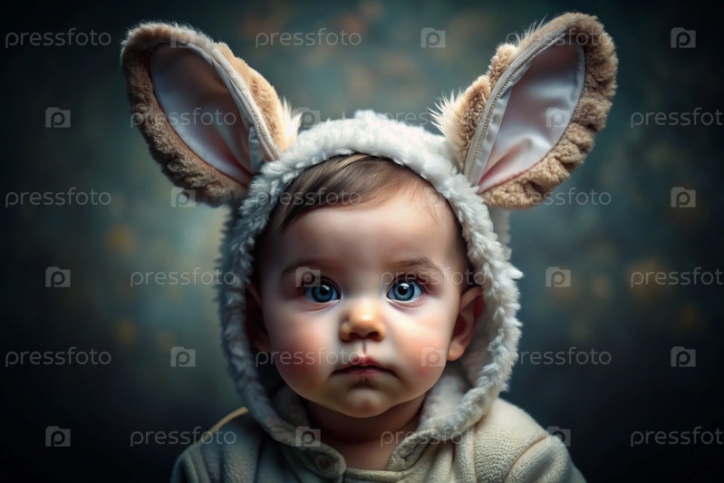Баннер. Винтажная открытка. Девушка в костюме пасхального кролика с милыми ушами. Концепция праздника Bright Easter Spring