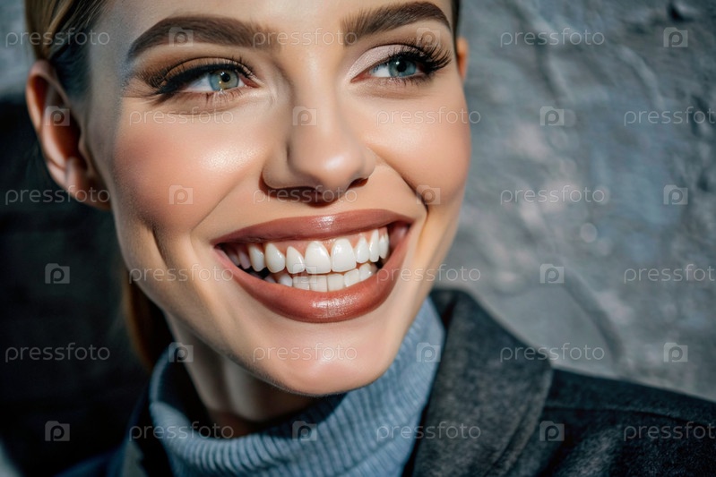 Красивая, очаровательная, белоснежная женская улыбка. Женские зубы до и после отбеливания. Концепция стоматологических клиник