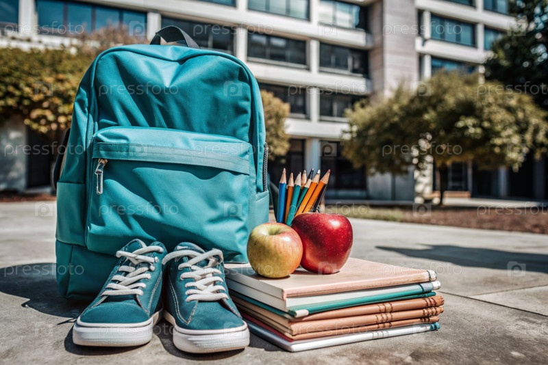 Праздник приходится на 1 сентября. рюкзак, кроссовки, яблоко и карандаши. вернемся в школу. концепция нового учебного года в школе. осенний день знаний