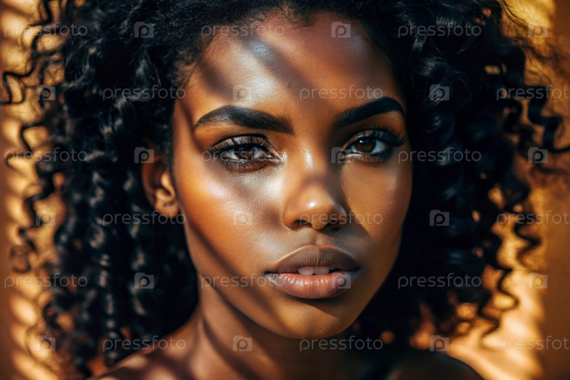Красивый портрет афроамериканской модели на нейтральном оранжевом фоне с контрастным освещением и тенями