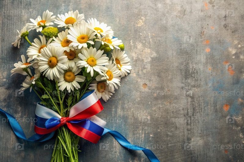 Всероссийский день семьи, любви и верности.Дейзи - букет ромашки с лентой трехцветного цвета России. День святого Валентина Петра и Февронии