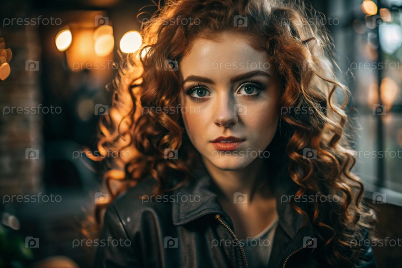 Выразительный портрет красивой рыжеволосой женщины с закрученными красными волосами и веснушками