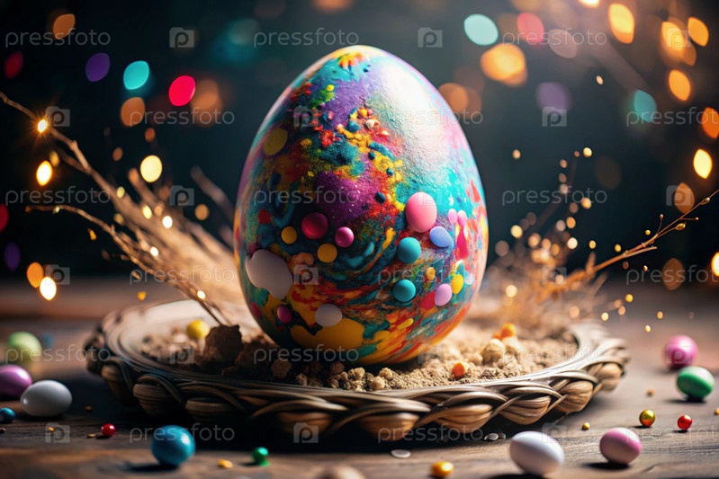 Пасхальный баннер. Концепция яркого пасхального праздника. Творческое абстрактное красочное пасхальное яйцо. Цветовой взрыв
