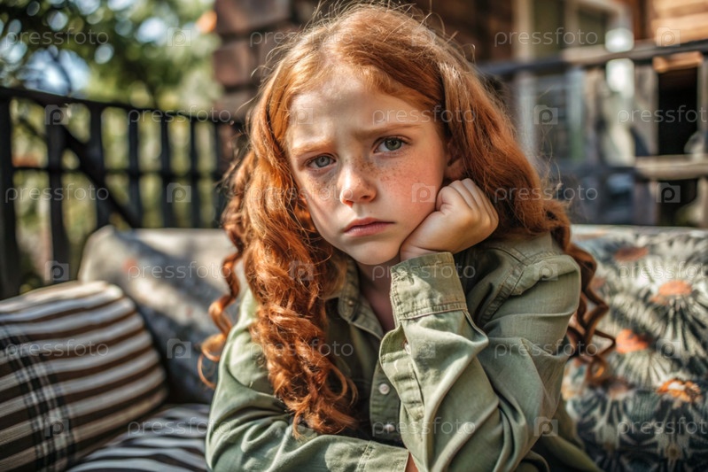 Портрет красивой, несчастной и печальной молодой рыжеволосой девочки-подростка.Проблемы, образование подростков