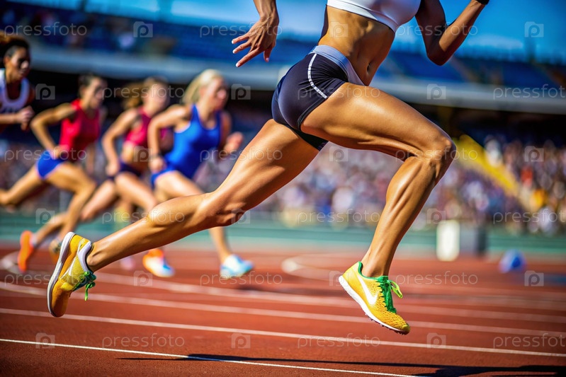 Ноги чернокожего афроамериканского спортсмена сближаются во время спринтовой гонки на спортивном мероприятии