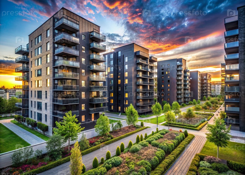 Современные многоэтажные жилые дома. Строительство новых жилых кварталов. Новые здания. Строительный бизнес. Ипотека для нового экологически чистого жилья