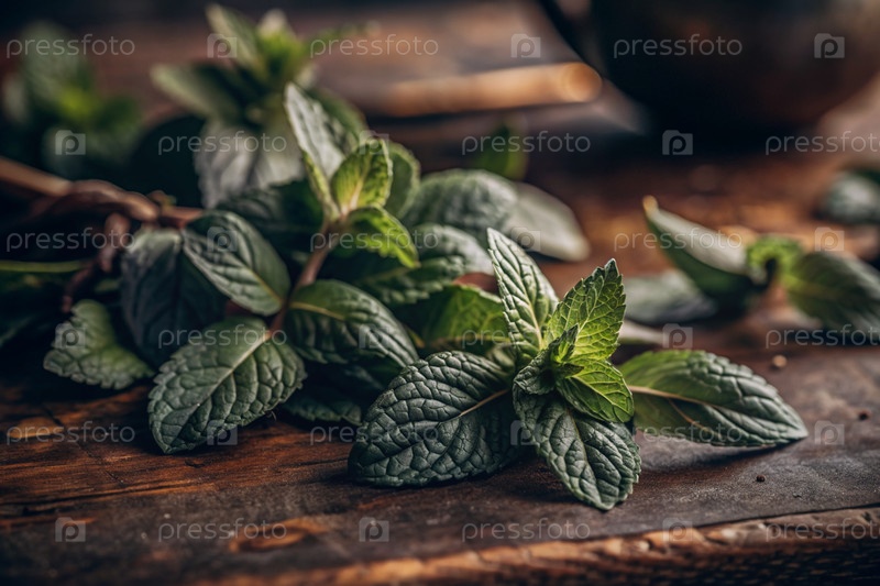 Закрытие зеленых листьев мяты. Листья с заметными венами и текстурой. Мента, бальзам для приготовления чая. Травяной чай для нервной системы