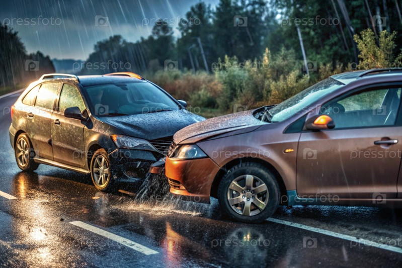 Автомобили получают несчастные случаи, аварии на дороге. повреждены, автомобили разбились на шоссе. концепция автострахования