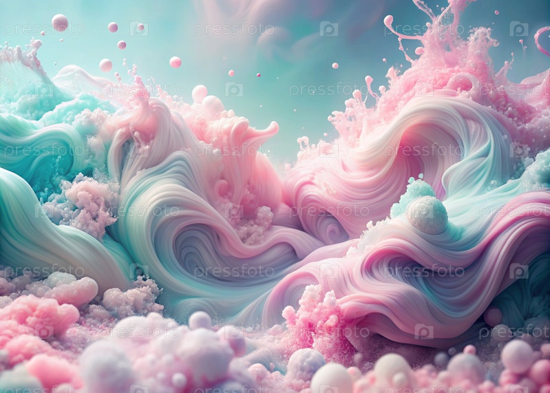 Абстрактный, мечтательный акварельный фон с волнами, полосами и жидкими потоками розового, синего и жемчуга
