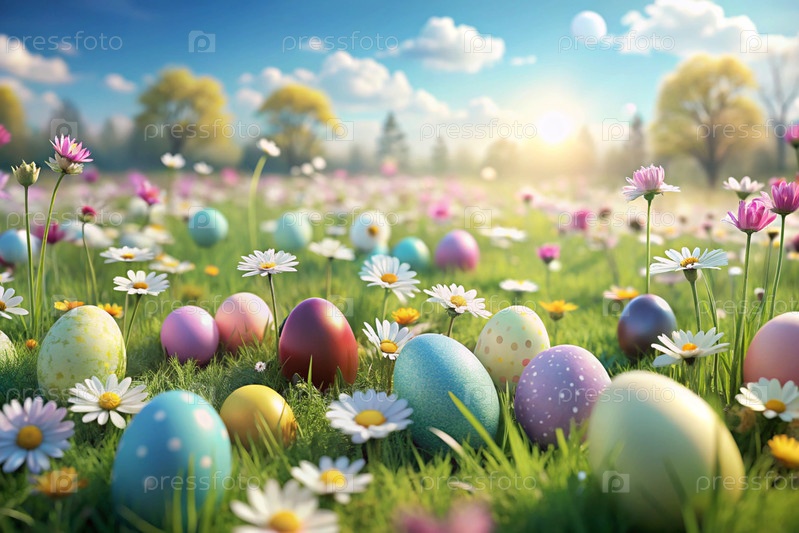 Красивый фон с пасхальными яйцами и весенними цветами