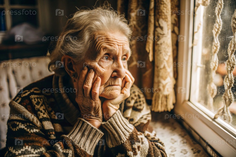 Минимализм.Портрет пожилой женщины, пенсионерки, концепция жизни пожилых людей, здоровье, одиночество и потеря памяти