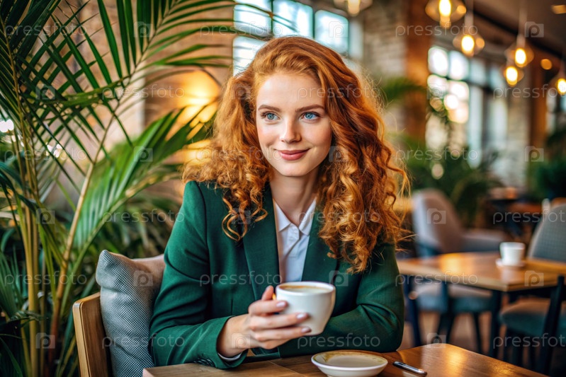 Молодая бизнес-женщина работает на ноутбуке в кафе или делает покупки онлайн