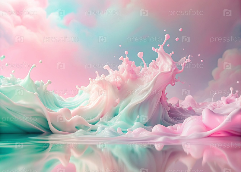 Абстрактный, мечтательный акварельный фон с волнами, полосами и жидкими потоками розового, синего и жемчуга