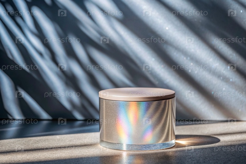 Пустой цилиндрический подиум со сверкающими кристаллами при преломлении света на минималистическом фоне, стенд для демонстрации моделей косметики и товаров